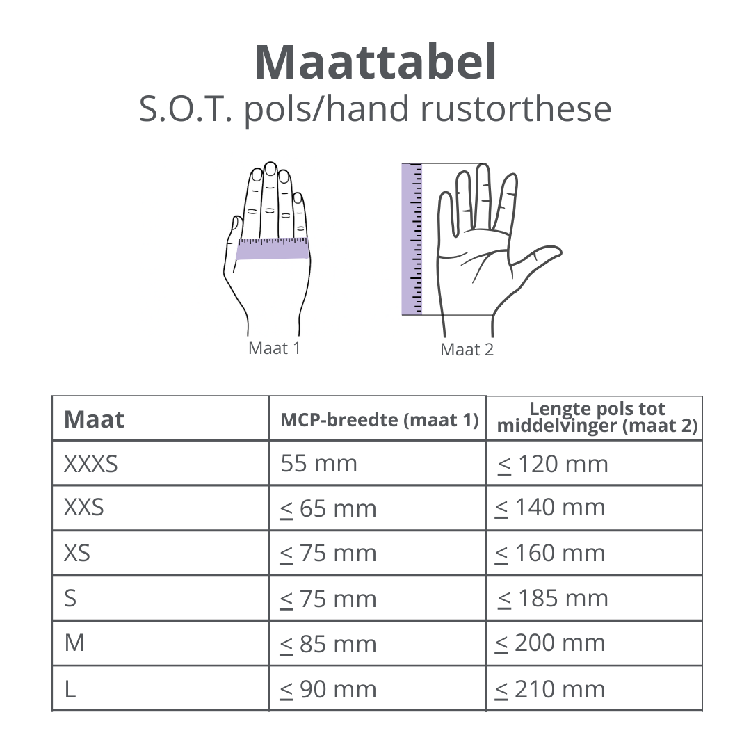 De S.O.T pols/hand rustorthese is speciaal ontwikkeld voor het ondersteunen van de hand en pols bij afwijkingen als gevolg van bijvoorbeeld een slappe of spastische verlamming. Deze orthese helpt de mobiliteit van de pols en hand te behouden en te verbeteren, en draagt bij aan een natuurlijke, neutrale stand van de pols.