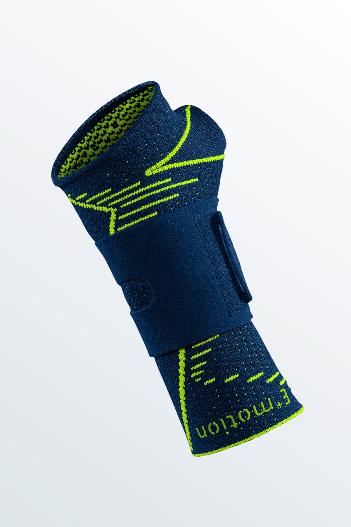 De Manumed active E+motion polsbrace in het blauw en groen is een actieve sportbandage die zorgt voor effectieve stabilisatie, compressie en pijnverlichting. Dankzij de combinatie van compressiebreiwerk, een geïntegreerde handspalk en extra versteviging ondersteunt deze polsbrace de pols tijdens dagelijks gebruik en sportactiviteiten.